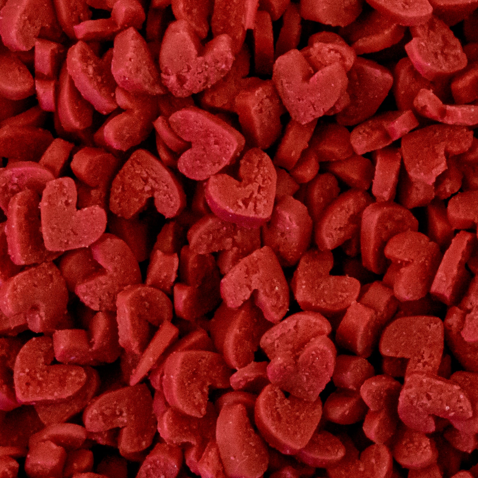 The mini version of our red heart sprinkles are the perfect size for small bakes and cakes and are the perfect finishing touch to Valentine's day cupcakes.