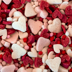 Pink and white heart sprinkles mixed with pink, red and white mini heart sprinkles and finished off with pink, red and white 100s and 1000s, our Sweet Heart Sprinkle mix is just what you need to give your cakes and bakes a romantic Valentine's day theme.