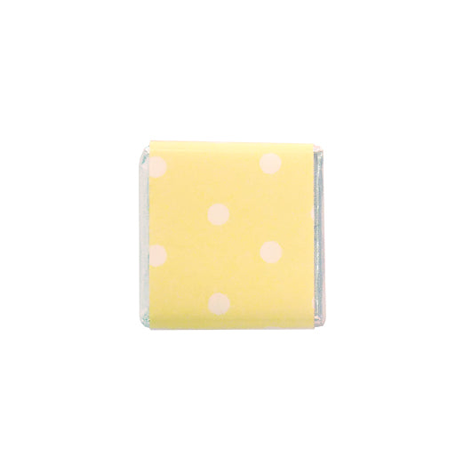 Silky smooth milk chocolate wrapped in silver foil & a lemon yellow polka dot wrapper
